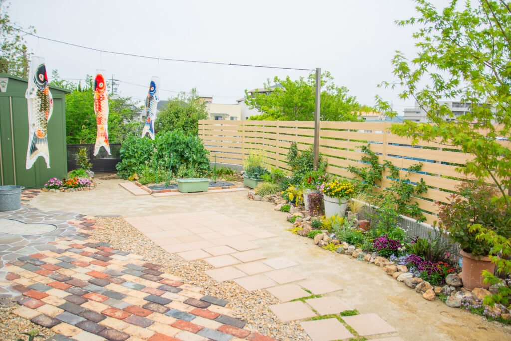 上の2枚を見比べていただくとわかりやすいのですが、シンボルツリー以外はすべてお客様ご自身で植えられたものになります。