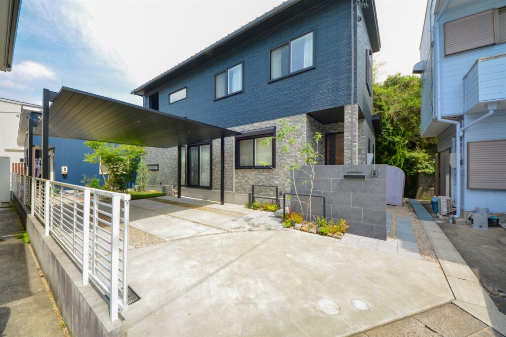 今回設置させていただいたカーポートは三協アルミのFⅡ。こちらのカーポートはお客様たってのご希望で、正面から眺めたときに屋根がフラットに見えてスタイリッシュだからという理由で採用いただきました。