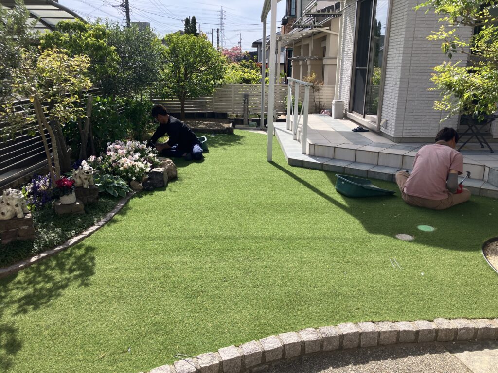 今回は天然芝から人工芝へのチェンジがご希望。なるべく本物らしさのあるものを、というご希望で選んだのは、