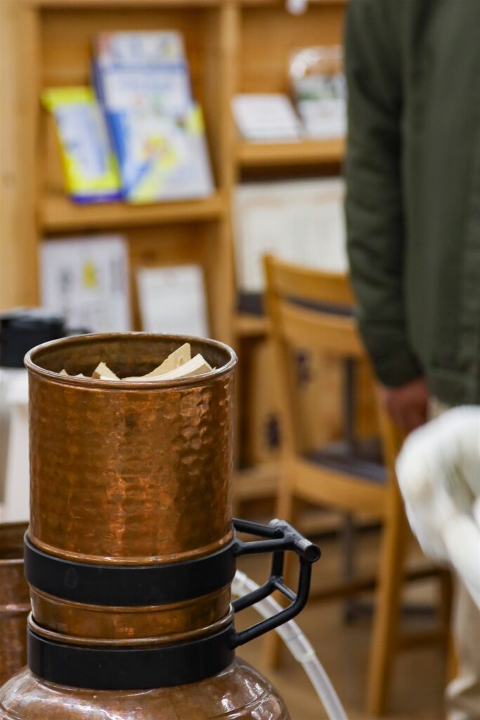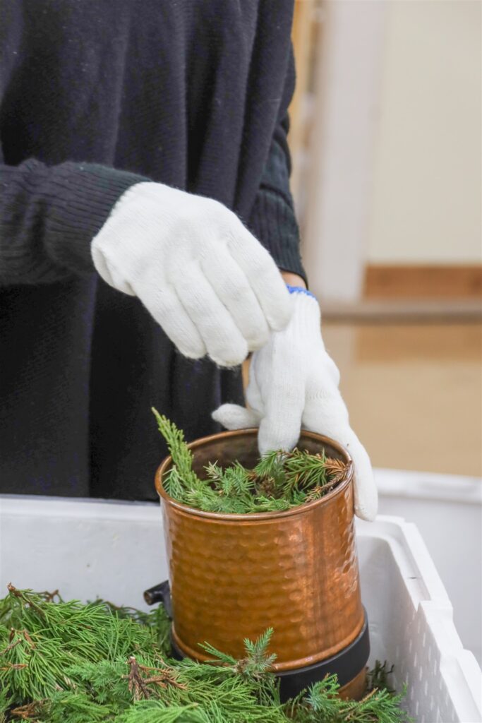 スギのウッドチップの他にも、能登ヒバチップの蒸留にも挑戦!