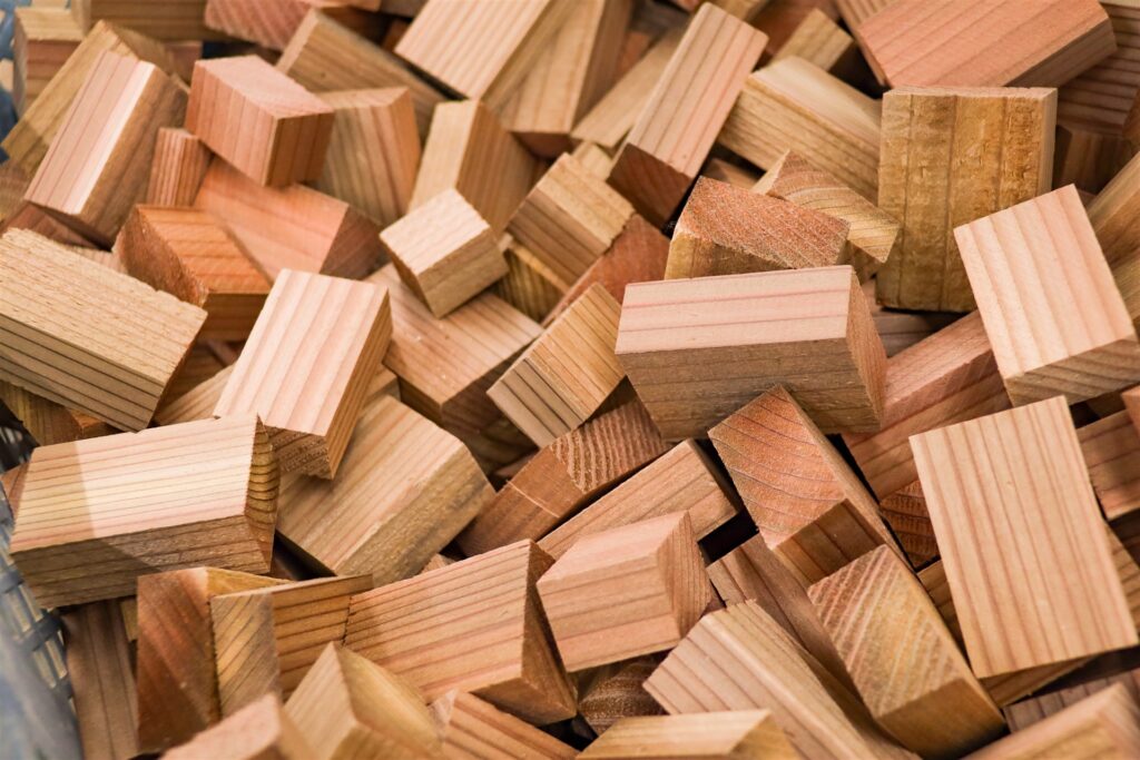 材料は弊社、岡崎製材で端材として出た「スギのウッドチップ」と