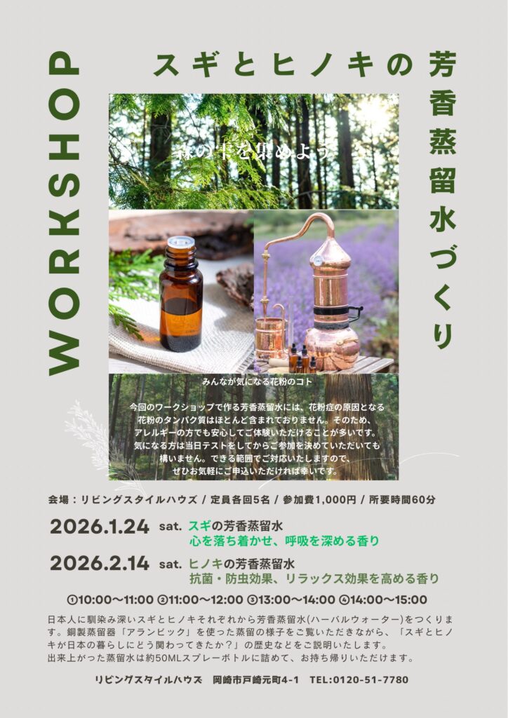 次回は2月14日に「ヒノキ」で芳香蒸留水をつくります。